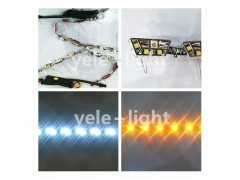 安装方便,背面采用3M胶和铁丝。黑色线接电瓶负极,红色线表示白光,连接小灯或者示宽灯线,黄色线表示黄光,接转向灯线。客户也可以根据个人喜好DIY连接。当开小灯或者示宽灯时,发白光,当作日行灯适用,当开转向灯时,发黄光,当作转向灯适用。